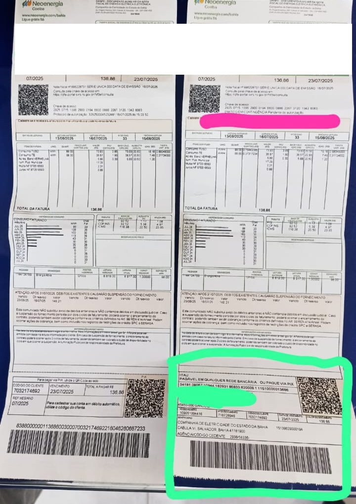 Consumidores de Gandu relataram, nesta terça-feira, (5), o recebimento de duas contas de energia elétrica com o mesmo valor e período de consumo. A situação gerou confusão entre os moradores e levou alguns a suspeitarem de um possível golpe.