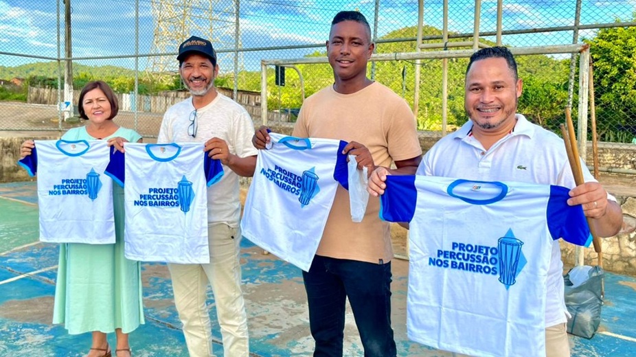 A Prefeitura de Ibirataia, por meio da Secretaria de Cultura e Turismo, realizou a entrega de uniformes para o Projeto Percussão nos Bairros, fruto de uma parceria com a empresa BERKANA (Comércio e Indústria de Confecções Bia Ltda). A ação aconteceu na quadra municipal, próxima à Creche Augusta Rocha de Oliveira, reunindo autoridades, apoiadores e as crianças participantes do projeto em um momento de integração e valorização cultural.