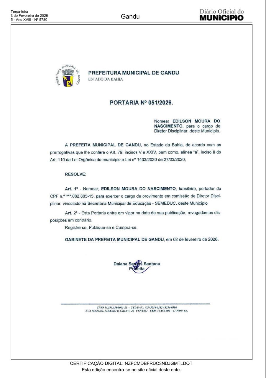 Nesta quarta-feira dia 04 de fevereiro de 2026, o Capitão PM Vitor Maia apresentou a nova equipe MCPM do Colégio Municipal Elódia Vellôso de Souza em Gandu, que terá como missão reestruturar o Modelo MCPM, seguindo composição: